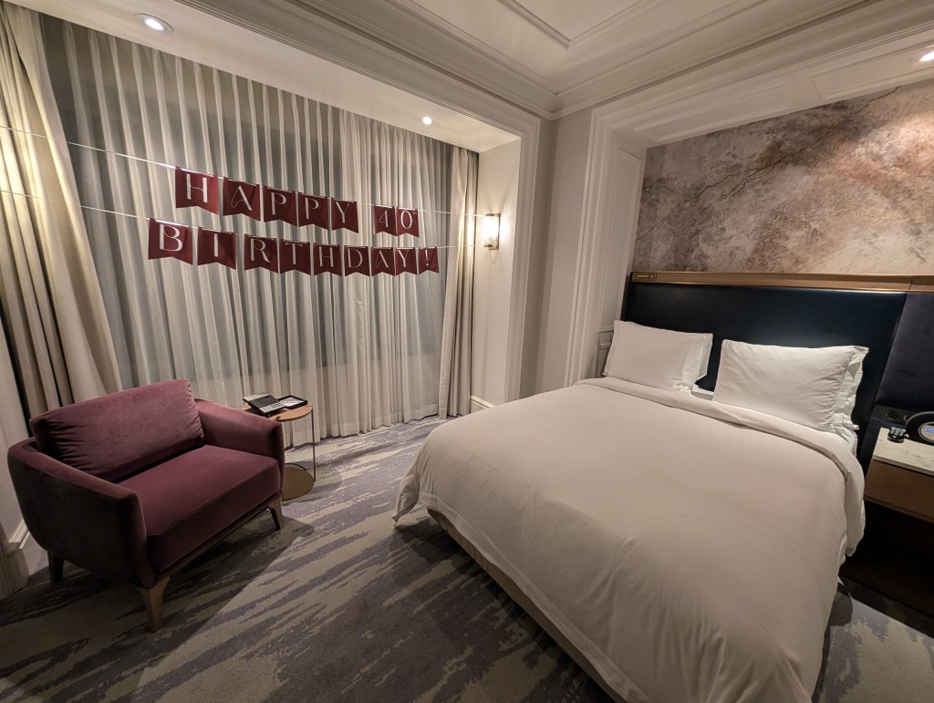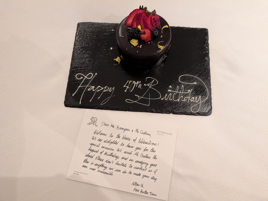 Comme on n’a pas 40 ans tous les jours et que nous voulions souligner l’événement en grand, j’ai fait une réservation de cinq nuits au St. Regis Toronto; un hôtel de luxe de la chaîne Marriott très bien situé au cœur de la Ville reine.