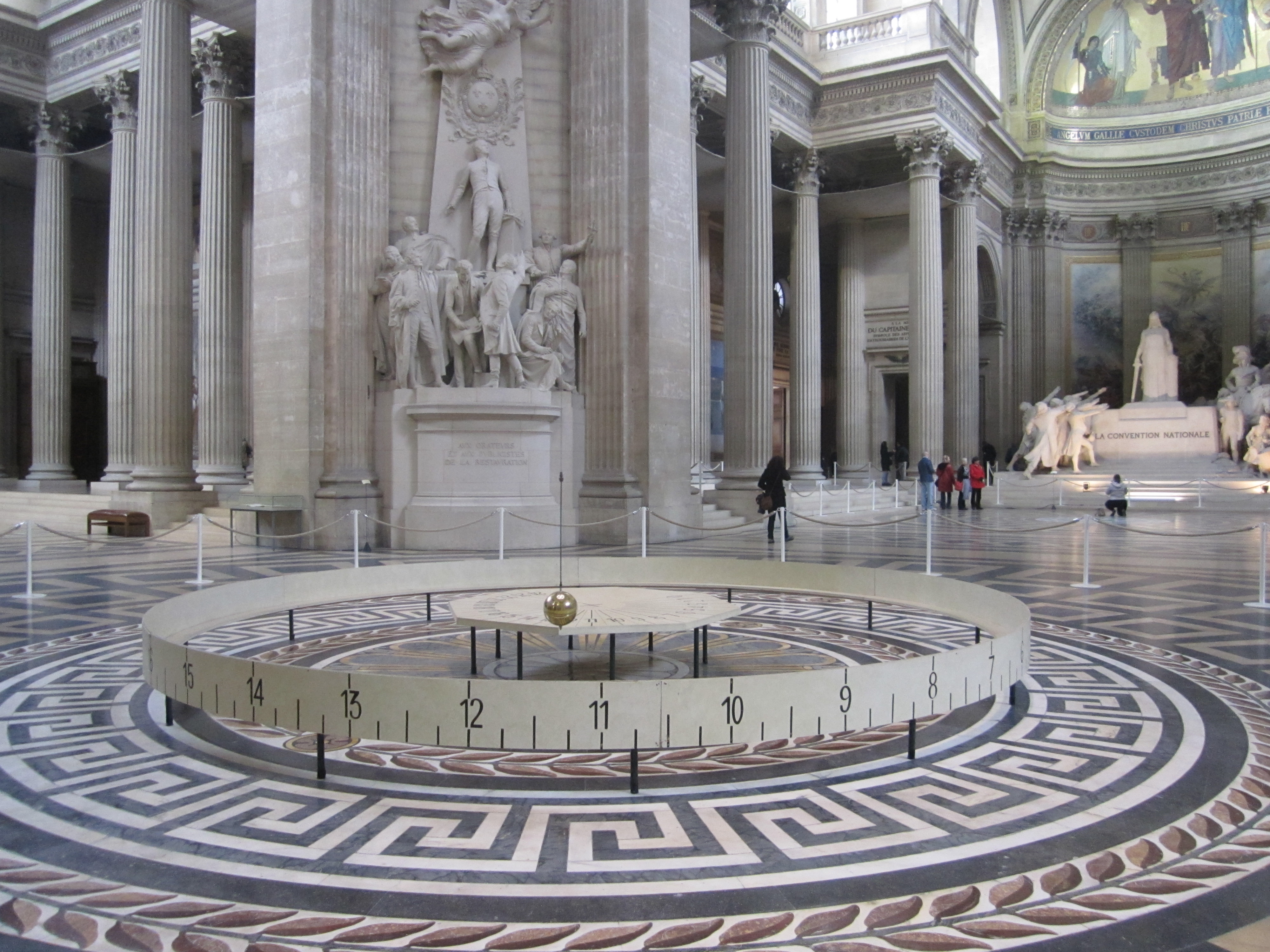 On y trouve aussi le pendule de Foucault. Suspendu à un long fil de fer depuis le toit de l’immeuble, le pendule se balance seul avec la gravité de la Terre. Et il indique l’heure avec une précision déconcertante. Comme le pendule bouge de 11 degrés par heure, le cadran a été gradué en conséquence.