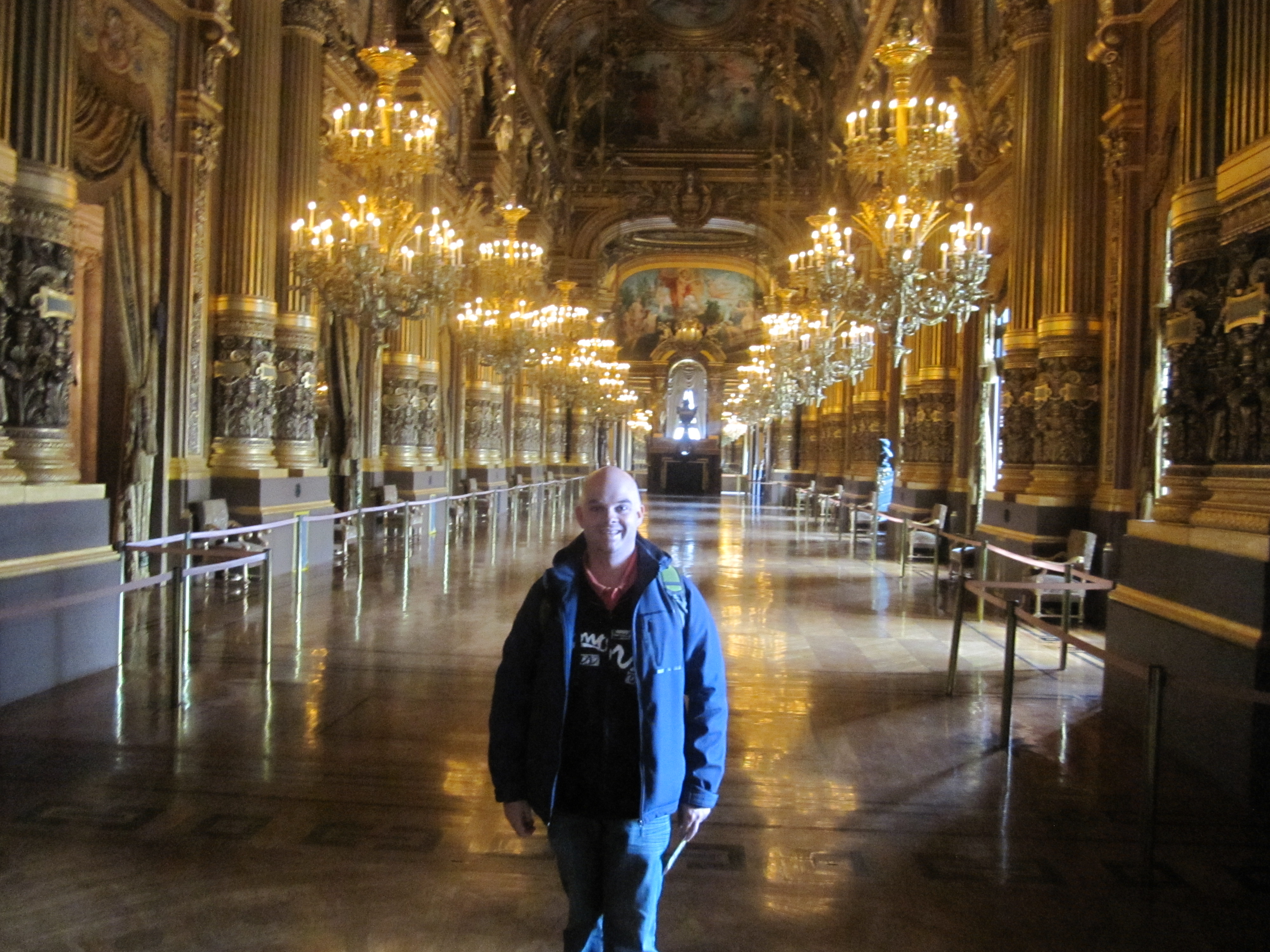 Par la suite, direction de l’Opéra Garnier reconnu pour son look incroyable. Je n’ai pas pu visiter la salle de spectacle puisqu’une répétition s’y déroulait, mais à ce qu’on dit, ce n’est pas le plus beau de toute façon. Le spectacle serait plus l’escalier, la fresque ornant le plafond et le foyer.