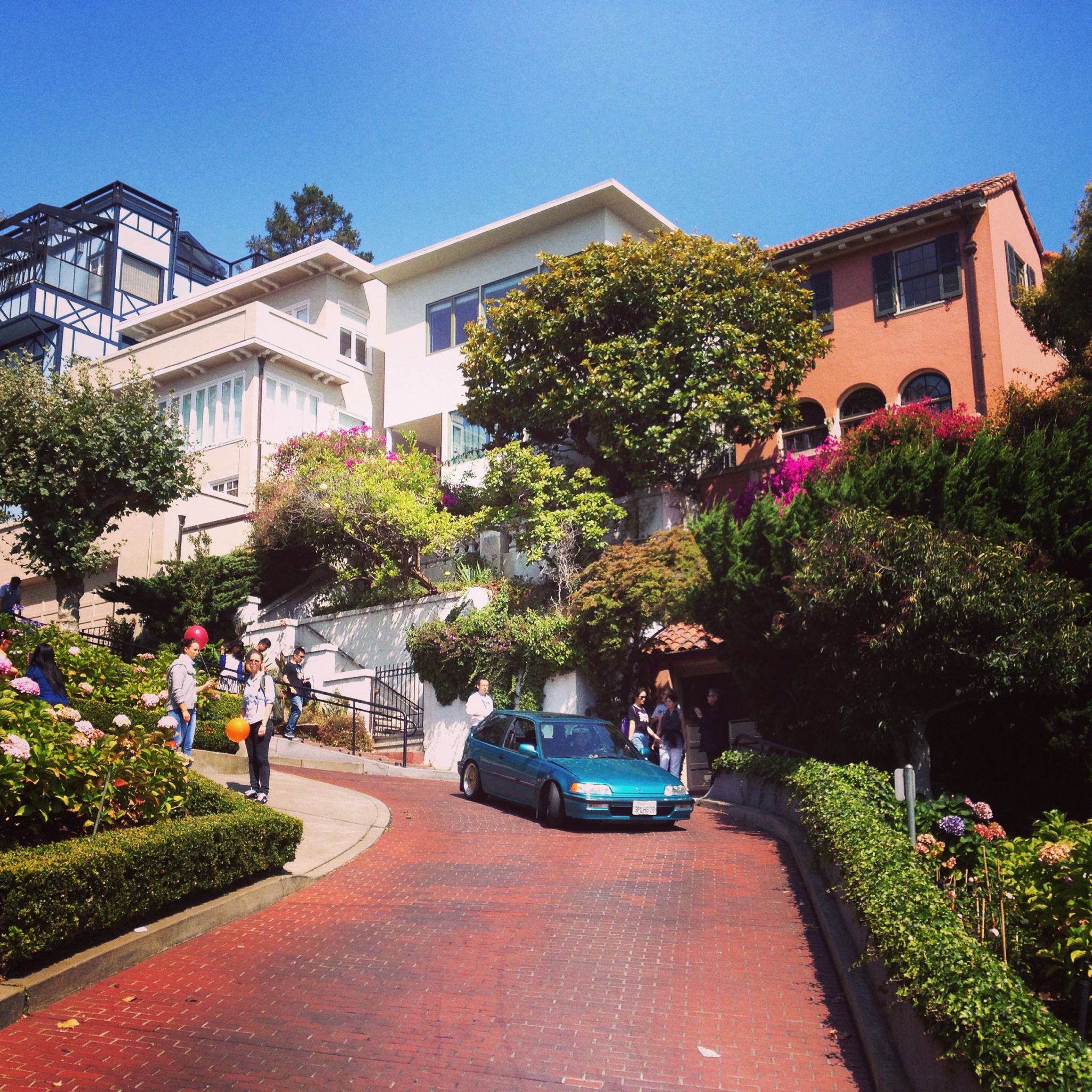Plus tôt en journée, nous nous sommes rendus dans la rue la plus populaire de la ville: Lombard Street. Vous savez, cette rue en « zig-zag »…