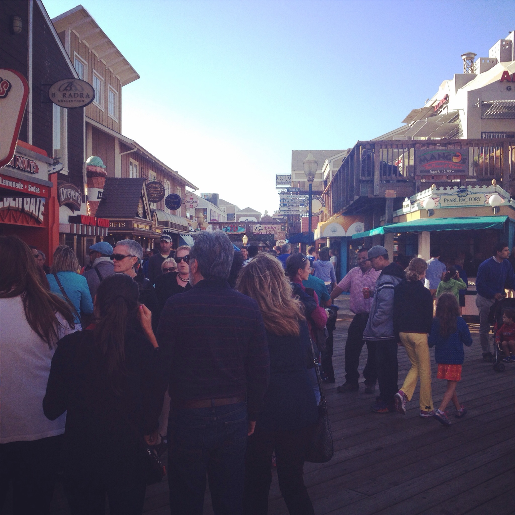 Ensuite, promenade dans Fisherman’s Wharf, sans doute le quartier le plus touristique de San Francisco. C’est un peu comme notre Vieux-Montréal, vous voyez le genre: promenade pour les touristes, boutiques de souvenirs kitchs, restaurants trop dispendieux… Mais bon, ça reste parmi les incontournables et l’ambiance est agréable.