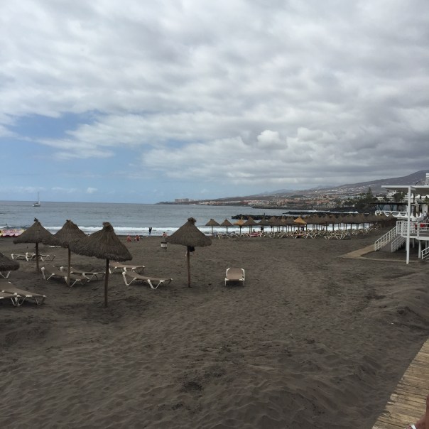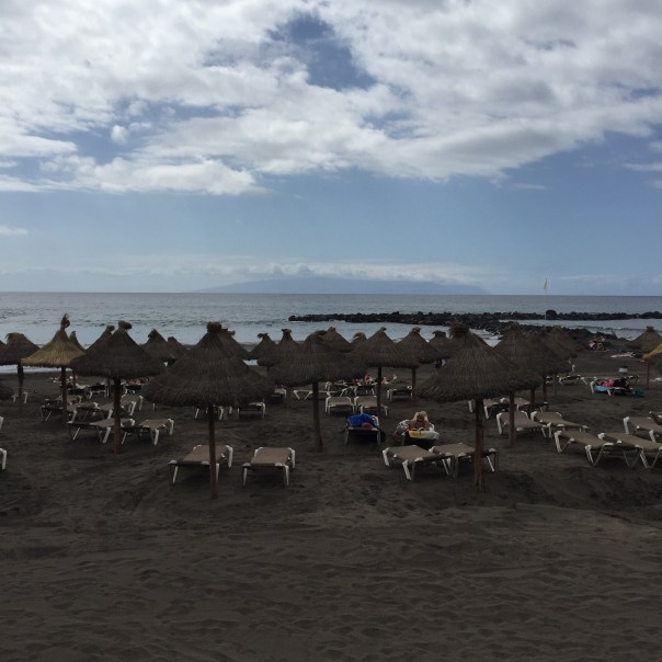 Je pense que c’est ce qu’il y a de plus impressionnant, ici, cette impression de changer de monde plusieurs fois en quelques kilomètres à peine. Des plages de sable beige, d’autres de sable rougeâtre, puis de sable noir (voir photo ci-dessous), question de ne pas oublier que Tenerife est une île volcanique.