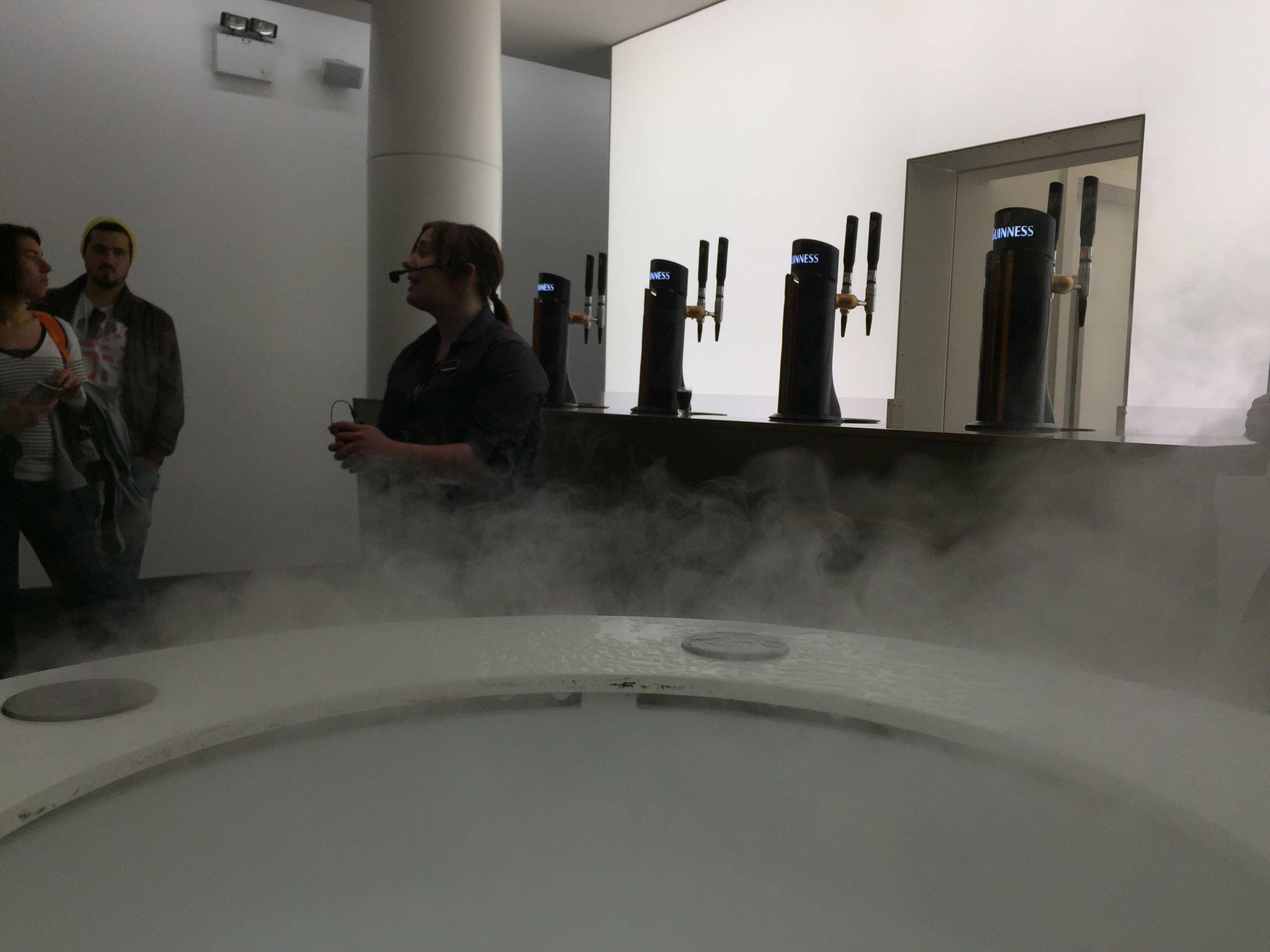 Une fois que vous êtes familier avec la bière, on vous invite à passer dans une salle immaculée où quatre barils dégagent une fumée où vous pouvez sentir individuellement les arômes de la Guinness.