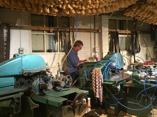 Avoir avoir déambulé quelques minutes, on nous amène finalement dans un atelier de fabrication des traditionnels sabots de bois hollandais. À voir ces souliers, on se dit toujours qu’il doit y avoir un énorme travail derrière chaque paire, mais le processus est plus simple que ce qu’on croyait.