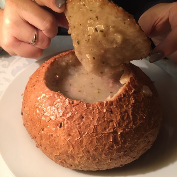 Quant à la soupe qu’on dit aigre, on la prépare entre autres avec un œuf bouilli et des morceaux de saucisse polonaise. Ce soir, elle était servie dans un bol en pain.
