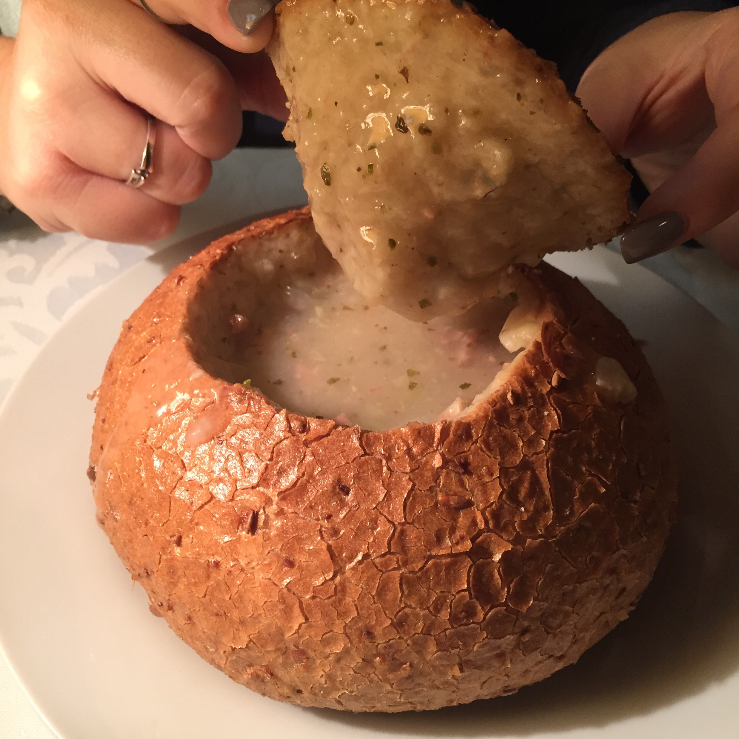 Quant à la soupe qu’on dit aigre, on la prépare entre autres avec un œuf bouilli et des morceaux de saucisse polonaise. Ce soir, elle était servie dans un bol en pain.