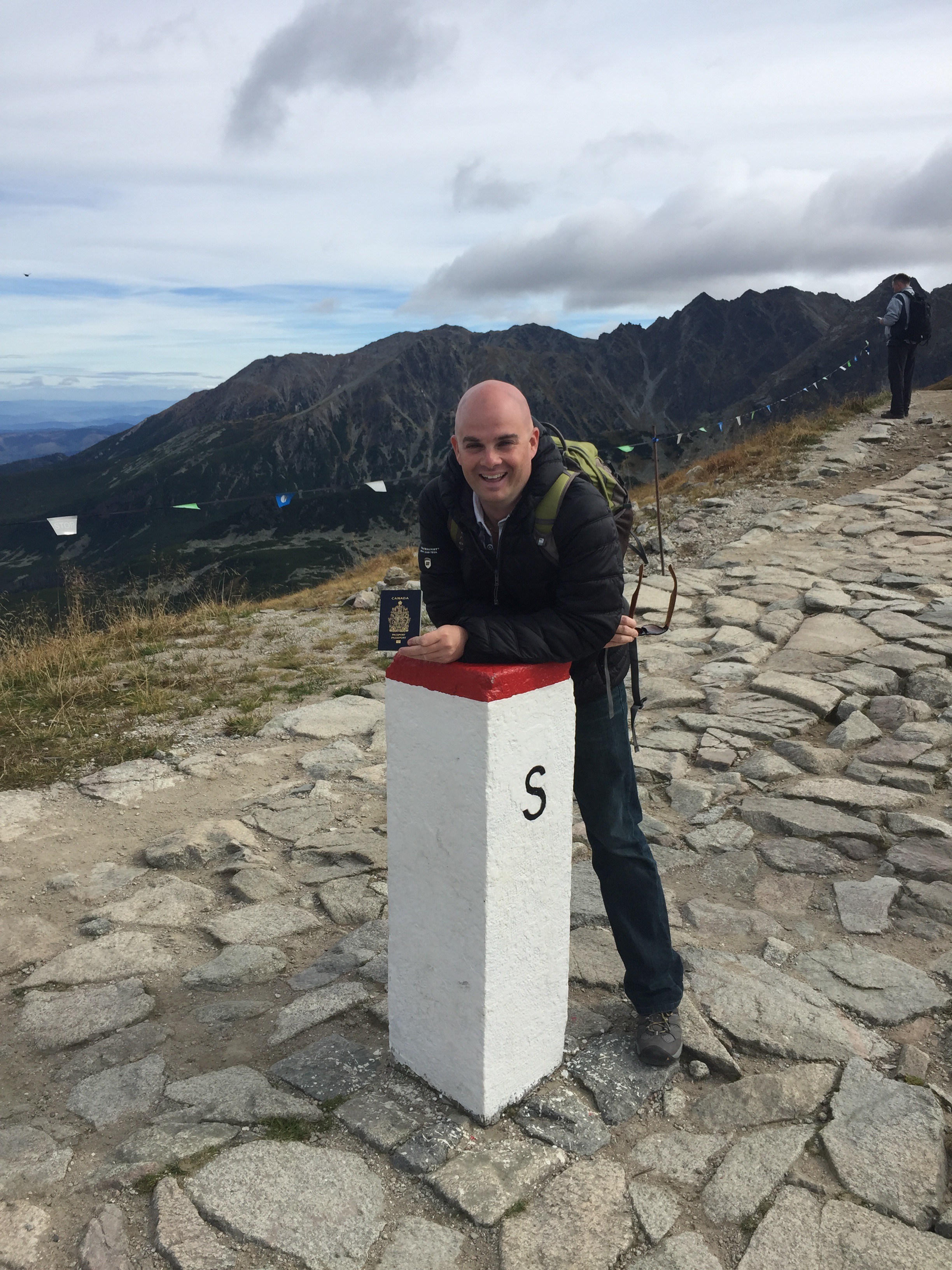 Fait insolite, le sommet du Kasprowy Wierch est traversé par la frontière séparant la Pologne de la Slovaquie. Je m’amuse donc à passer d’un pays à l’autre, à être des deux côtés en même temps… Un pied en Pologne, l’autre en Slovaquie. Je peux donc me vanter d’être allé en Slovaquie!