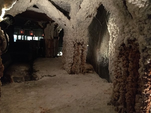 À la première occasion, je mets un peu de salive sur le bout d’un de mes doigts avant de le frotter contre une paroi rocheuse de la mine et de goûter le tout… Ok, c’est confirmé, on est bien dans une mine de sel! (Et bien quoi? C’est la guide qui a dit de le faire!)