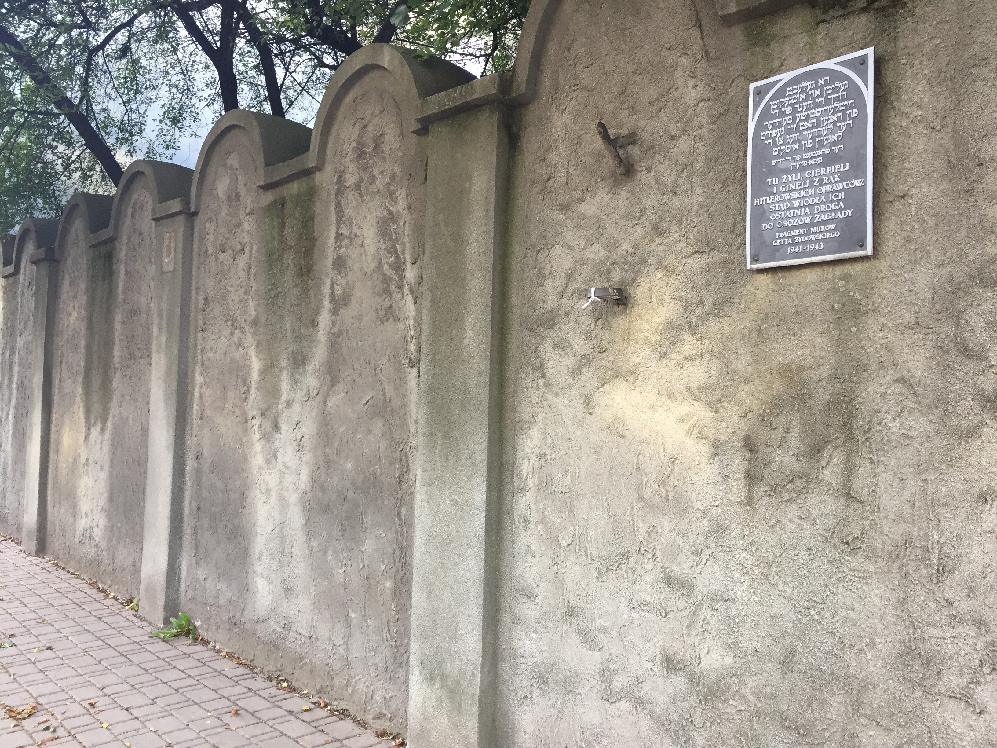Certains vestiges sont également toujours visibles, dont une section du haut mur de béton qui entourait le ghetto. J’ai d’ailleurs appris que les fenêtres des immeubles faisant partie du ghetto qui donnaient vue sur l’extérieur du périmètre avaient à l’époque été condamnées. Comme quoi on faisait tout pour exclure les Juifs.