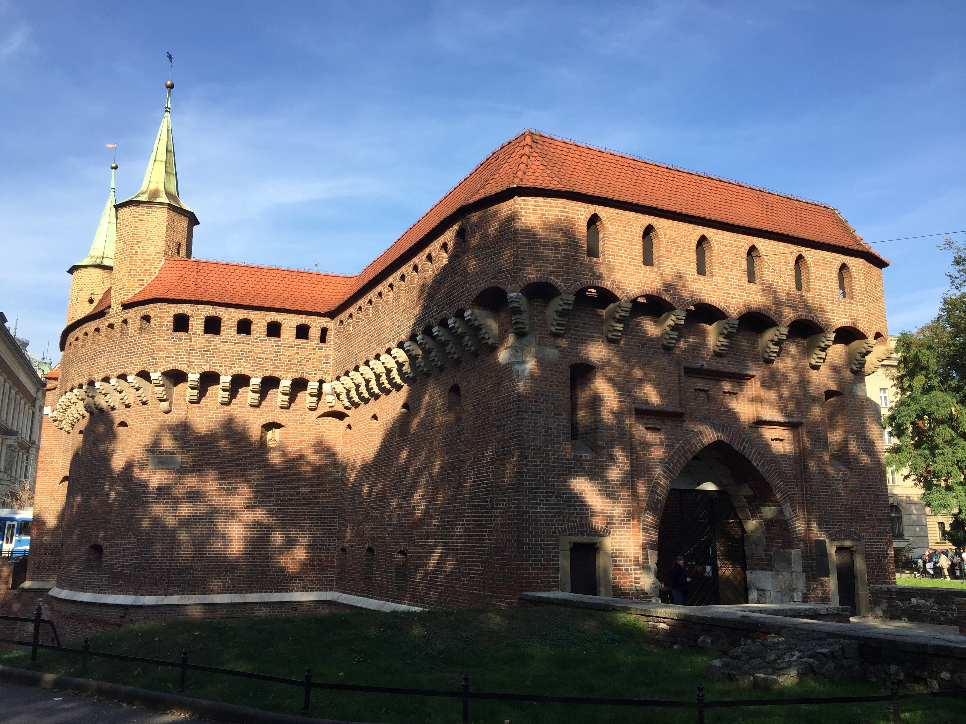 À la fin du 15e siècle, la vieille ville de Cracovie était fortifiée et il reste, encore aujourd’hui, quelques souvenirs de cette architecture gothique. Parmi eux, le Barbakan, une forteresse circulaire intacte au nord de la vieille ville où se trouve également une partie du mur de fortification de l’époque.