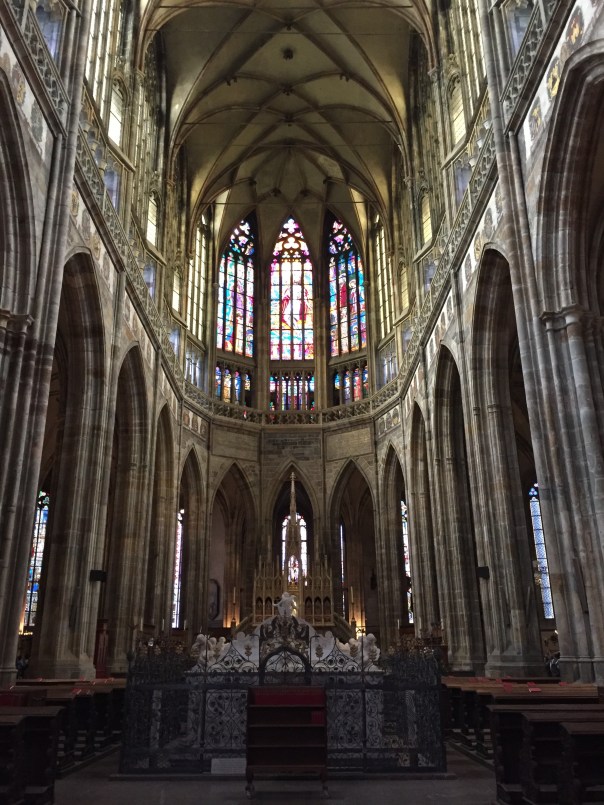 L’Amoureuse et moi nous sommes donc contentés d’en visiter quatre parties: le palais royal, la basilique Saint-Georges, la ruelle d’or et la cathédrale Saint-Guy (photo ci-dessous). C’est d’ailleurs cette dernière visite qui s’est avérée la plus impressionnante de par sa grandeur et sa beauté incontestable. Les nombreuses chapelles, les vitraux et le majestueux tombeau de Jean Népomucène ont notamment retenu notre attention.
