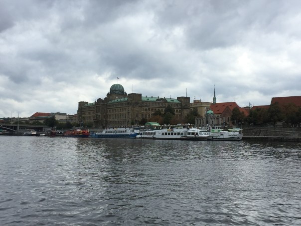 6. Alors que notre croisière s’achève, notre guide nous montre un immeuble sur la droite et nous demande si ce dernier nous dit quelque chose. L’Amoureuse et moi nous regardons… « Non. » On nous explique ensuite qu’un bâtiment identique à celui-ci a résisté à l’explosion de la bombe atomique d’Hiroshima en 1945. En effet, l’architecte tchèque a dessiné trois projets d’importance au cours de sa carrière: la gare de Prague, cet édifice qui sert au gouvernement tchèque et une copie de ce dernier au Japon, le dôme de Genbaku.