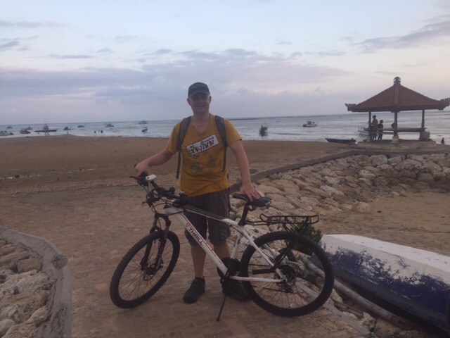 On a donc profité de nos dernières heures à Sanur en faisant un tour de vélo sur le « board walk » avant le coucher du soleil, hier, puis en déjeunant sur une terrasse au bord de la mer, ce matin.
