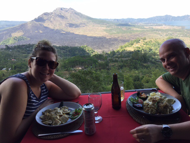 Nous avons finalement terminé notre journée en milieu d’après-midi en dînant dans un restaurant exceptionnel. Nous avons demandé au chauffeur de nous conduire au Lakeview Restaurant qui offre une vue à couper le souffle sur le mont Batur, dont nous avons fait l’ascension en milieu de semaine, de même que sur le majestueux lac Batur.