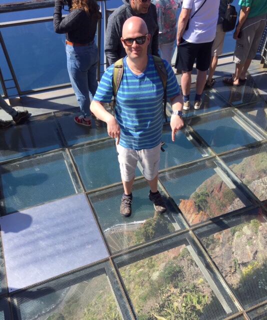 Ce matin, nous nous sommes rendus en autobus à Cabo Girão, à quelques kilomètres seulement de Funchal. La route était impressionnante: des tunnels, des falaises et des côtes dans un décor tout de vert. Le belvédère de Cabo Girão, situé à 580 mètres au-dessus de l’eau offre une vue spectaculaire sur Madère sur 180 degrés.