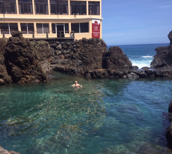 Ok, je l’avoue, l’océan est plutôt déchaîné. Parfois, les piscines se retrouvent complètement submergées par les vagues qui arrivent en claquant contre les rochers. Mais ce n’est pas parce que je suis un piètre nageur et que j’ai seulement mes deux premiers écussons en natation que je suis moins déçu!