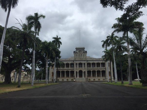 Sur le même thème, nous avons profité de la journée pour visiter le quartier historique d’Honolulu; circuit qui nous a d’abord mené au ‘Iolani Palace, le seul palais royal des États-Unis. L’immeuble installé au coeur d’un parc a été construit en 1882 pour le roi Kalakaua et a ensuite été habité par sa sœur, la reine Lili’uokalani, qui a été renversée en 1893.