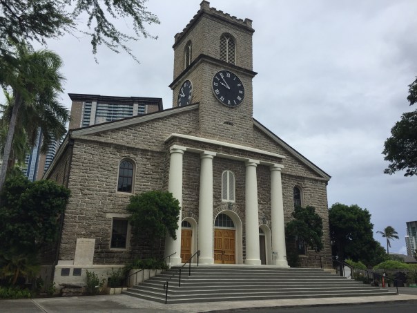 Nous avons aussi eu la chance de voir la Kawaiaha’o Church, une petite église érigée entre 1838 et 1842 et qui est faite de 14 000 blocs de corail qui ont été découpés à même la barrière, en apnée, entre trois et six mètres de profondeur. L’intérieur est tout simplement charmant: presque tout est blanc et les bancs faits de bois foncé sont tous équipés d’un élégant coussin rouge.