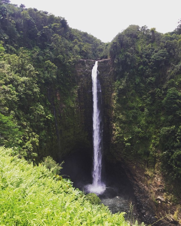 Nous nous sommes ensuite rendus au Akaka Falls State Park où se trouvent deux chutes qu’on découvre facilement dans un petit sentier en boucle d’environ 800 mètres. Si la première, Kahuna, haute de 30 mètres ne nous a pas vraiment impressionnés, la chute d’Akaka, qui est l’une des plus hautes de l’archipel avec ses 135 mètres, nous en a mis plein la vue. Il y a quelque chose d’obnubilant à regarder cette eau tomber de si haut avant de terminer sa chute dans le grand bassin tout en bas. La végétation luxuriante autour de la chute et ailleurs dans le parc est aussi surréaliste. Akaka est semble-t-il l’une des chutes les plus populaires et son image servirait souvent pour illustrer les cartes postales.