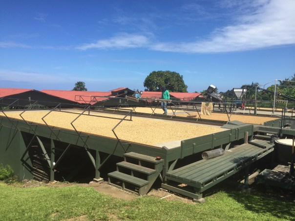 C’est par ailleurs impressionnant de voir les immenses séchoirs pour les grains de café où les ouvriers doivent tourner les gains aux 15-20 minutes pour assurer un séchage uniforme. Au début du cycle, l’ensemble des grains pèse environ 5000 lbs alors qu’il n’en pèse que 1500 à la fin…