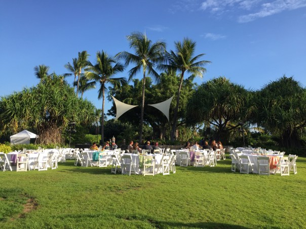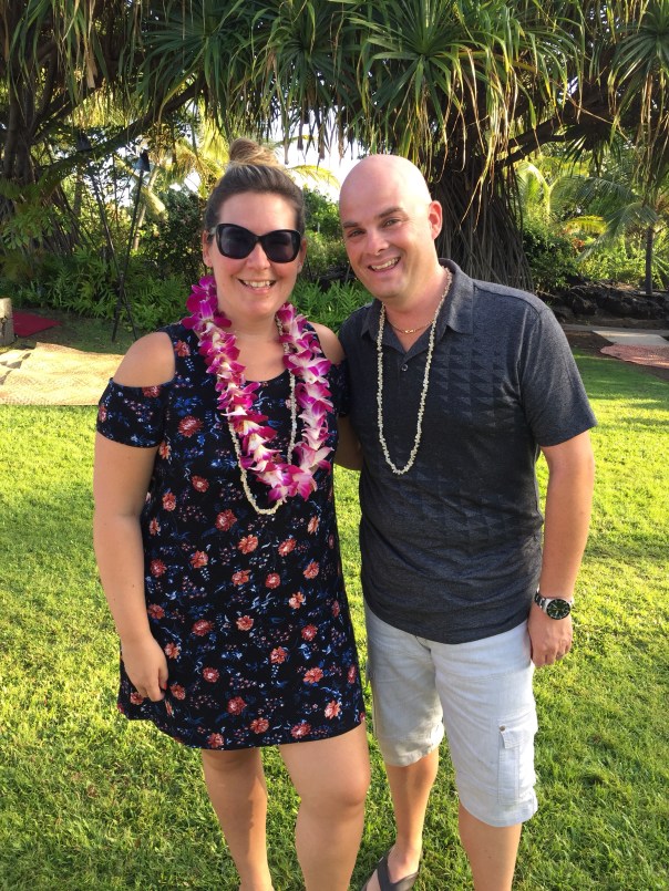 Si l’expérience est possible sur chacune des îles, notre choix s’est arrêté sur le « Haleo Luau » présenté au Sheraton Kona Resort & Spa de Keauhou Bay. Une fois sur place, on nous remet chacun un lei (un collier de coquillages) et c’est le moment tant attendu de l’Amoureuse qui rêve d’un collier de fleurs depuis le début du voyage. On nous offre chacun une boisson de bienvenue et on nous assigne ensuite une place parmi la dizaine de tables installées à l’extérieur.