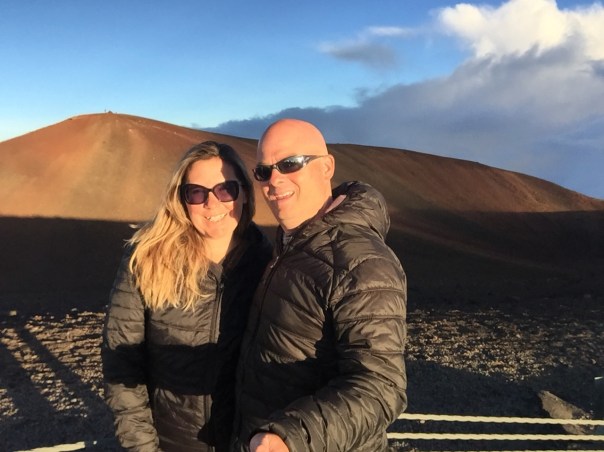C’est donc « armés » de notre Jeep plein de carburant (que nous avons surnommé « Hulk » pour l’occasion) que nous avons quitté Kona en direction du volcan vers 15h. Arrivés vers 16h30 au centre d’accueil des visiteurs, à 2800 mètres, on nous énonce les consignes de sécurité, puis on nous demande d’attendre au moins 30 minutes avant de prendre la route du sommet, question de donner le temps à notre corps de s’acclimater à l’altitude. C’est aussi le temps d’ajouter une couche de vêtement: s’il faisait 34 degrés Celsius au niveau de la mer, il fait à peine 6 degrés au sommet. Étant déjà vêtu d’un jean et d’un t-shirt, j’ajoute un coton ouaté et mon manteau compressible alors qu’une faible pluie tombe.