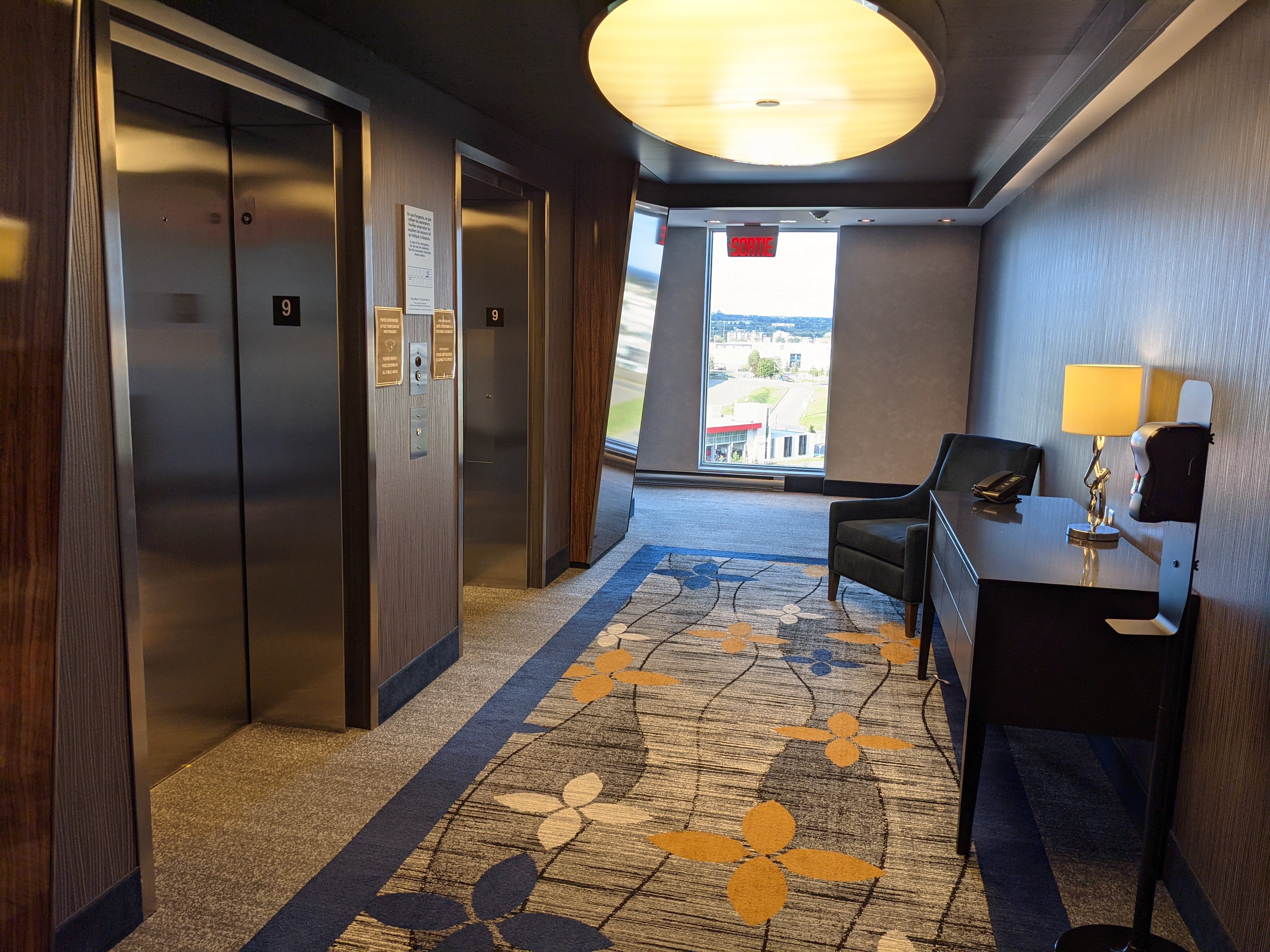 Nous sommes finalement arrivés à l’hôtel un peu avant 17h. Comme j’avais fait l’enregistrement via l’application mobile Marriott BonVoy 48 heures avant notre arrivée et que le Marriott Courtyard Ville de Québec dispose de la technologie clé mobile, nous n’avons pas eu à passer à la réception et sommes directement montés à notre chambre, au 9e et dernier étage. En effet, les hôtels de la chaîne qui disposent de cette technologie permettent aux clients d’obtenir une clé virtuelle dans l’application et de déverrouiller la porte de leur chambre avec leur cellulaire via Bluethoot. Peu avant notre arrivée, j’ai donc reçu une notification m’informant que notre chambre était prête et que la clé mobile était disponible.