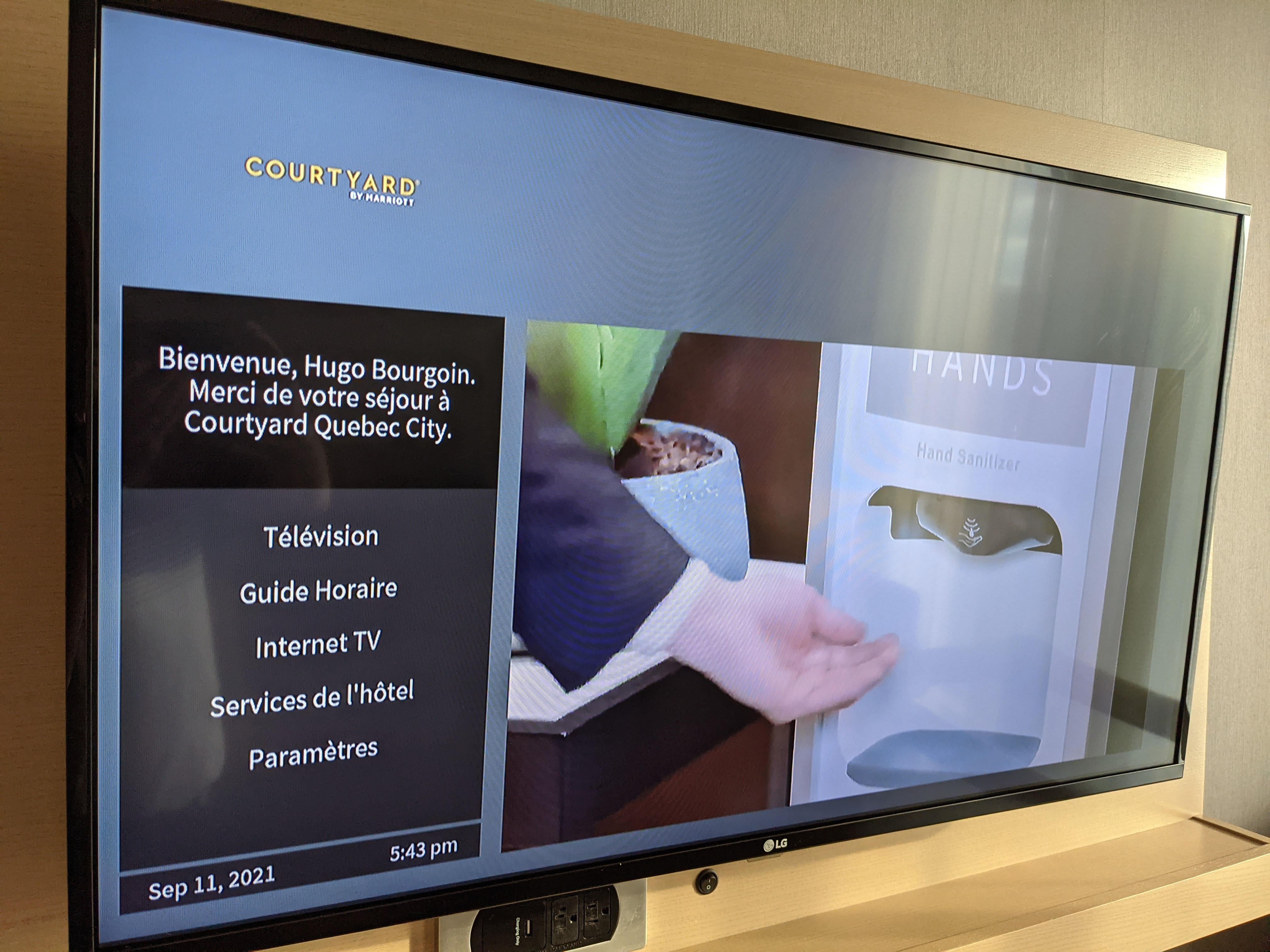 Nous avons particulièrement aimé notre séjour, notamment en ce qui concerne la situation géographique de l’hôtel et ses alentours. En effet, le Marriott Courtyard Ville de Québec se trouve près des grands axes routiers et à quelques minutes seulement de plusieurs restaurants de type «familial» (Rôtisserie St-Hubert, Normandin, Toujours Mikes, Cora, etc.) et d’un café Starbucks bien nécessaire le lendemain matin, par exemple. Le hall d’entrée, les corridors et notre chambre étaient de style moderne et, honnêtement, tout cela m’a paru comme si l’hôtel était encore neuf, même s’il a ouvert ses portes en 2016. La chambre nous a paru bien insonorisée. L’hôtel dispose par ailleurs d’un grand stationnement sans frais pour les clients. Nous y retournerions donc sans hésiter.