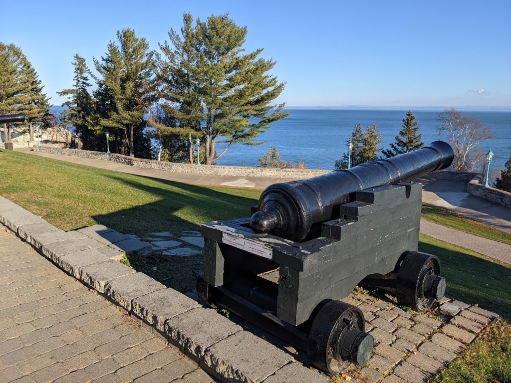 La météo était à ce point clémente que j’ai même pu m’installer pour lire à l’extérieur, dans l’une des chaises Adirondack disposées face au fleuve. La vue était d’ailleurs magnifique et je ne pouvais m’en lasser. Je regardais les bateaux glisser lentement sur le fleuve qui, à cet endroit, à des airs d’océan tellement il est large. Tout ça avec le clapotement des vagues qui se rendait jusqu’en haut de la falaise.