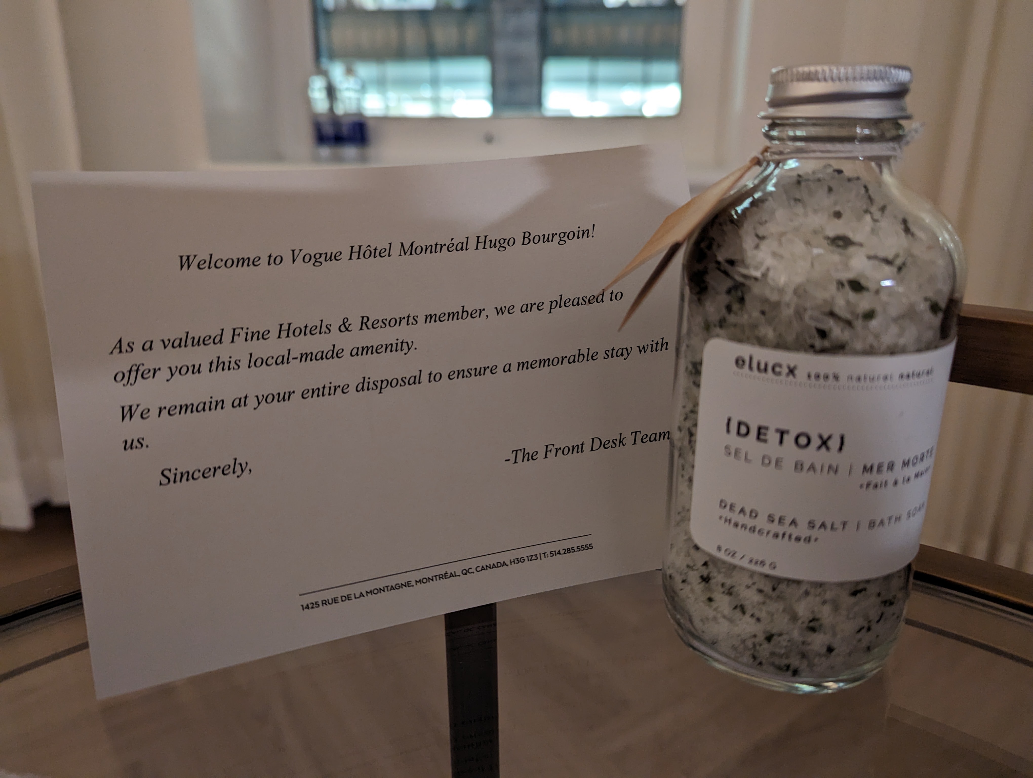 Comme le Vogue Hôtel Montréal fait également partie du programme Fine Hotels & Resorts d’American Express, j’étais par ailleurs éligible à une série d’autres avantages: