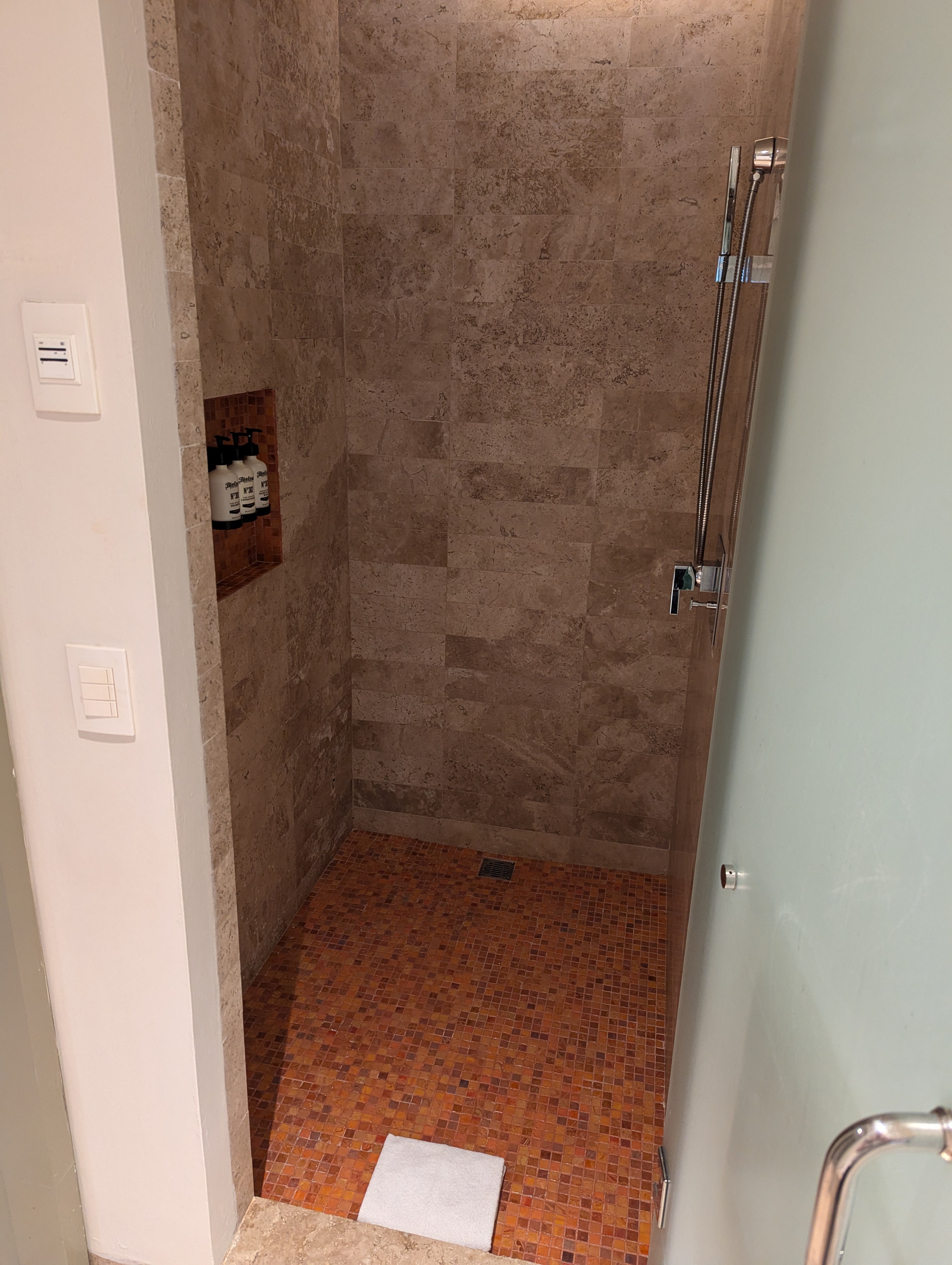 Notre grande suite était meublée de deux lits doubles, d’un divan avec table basse, ainsi qu’une table ronde avec deux chaises. La salle de bain était quant à elle équipée d’un immense bain et d’une douche en céramique. La pression de l’eau a toujours été bonne et nous n’avons pas manqué d’eau chaude. La grandeur des lits a d’ailleurs été notre seule et unique déception du voyage. Considérant la grandeur de la chambre, l’hôtel aurait pu faire l’effort de mettre deux grands lits.