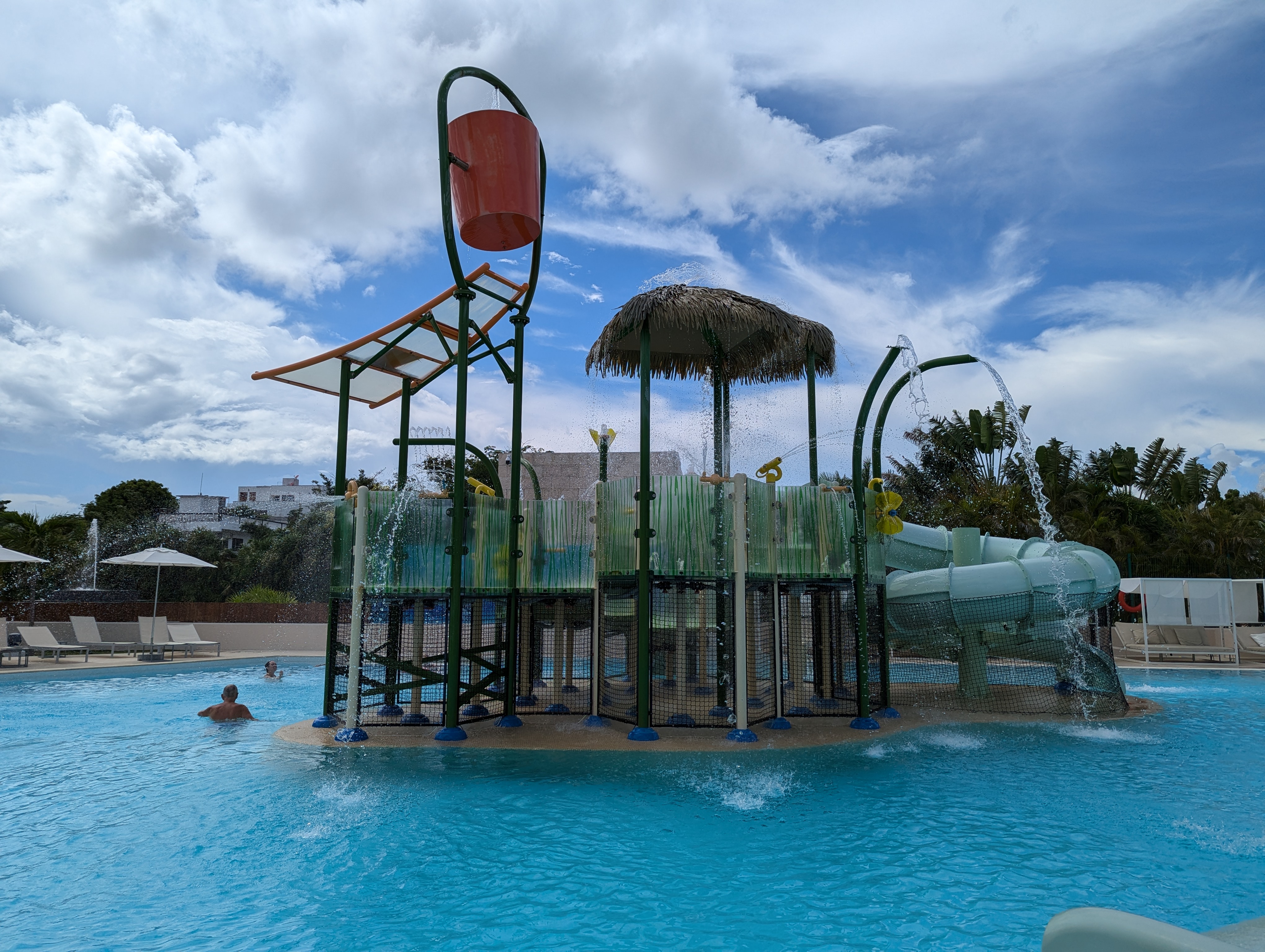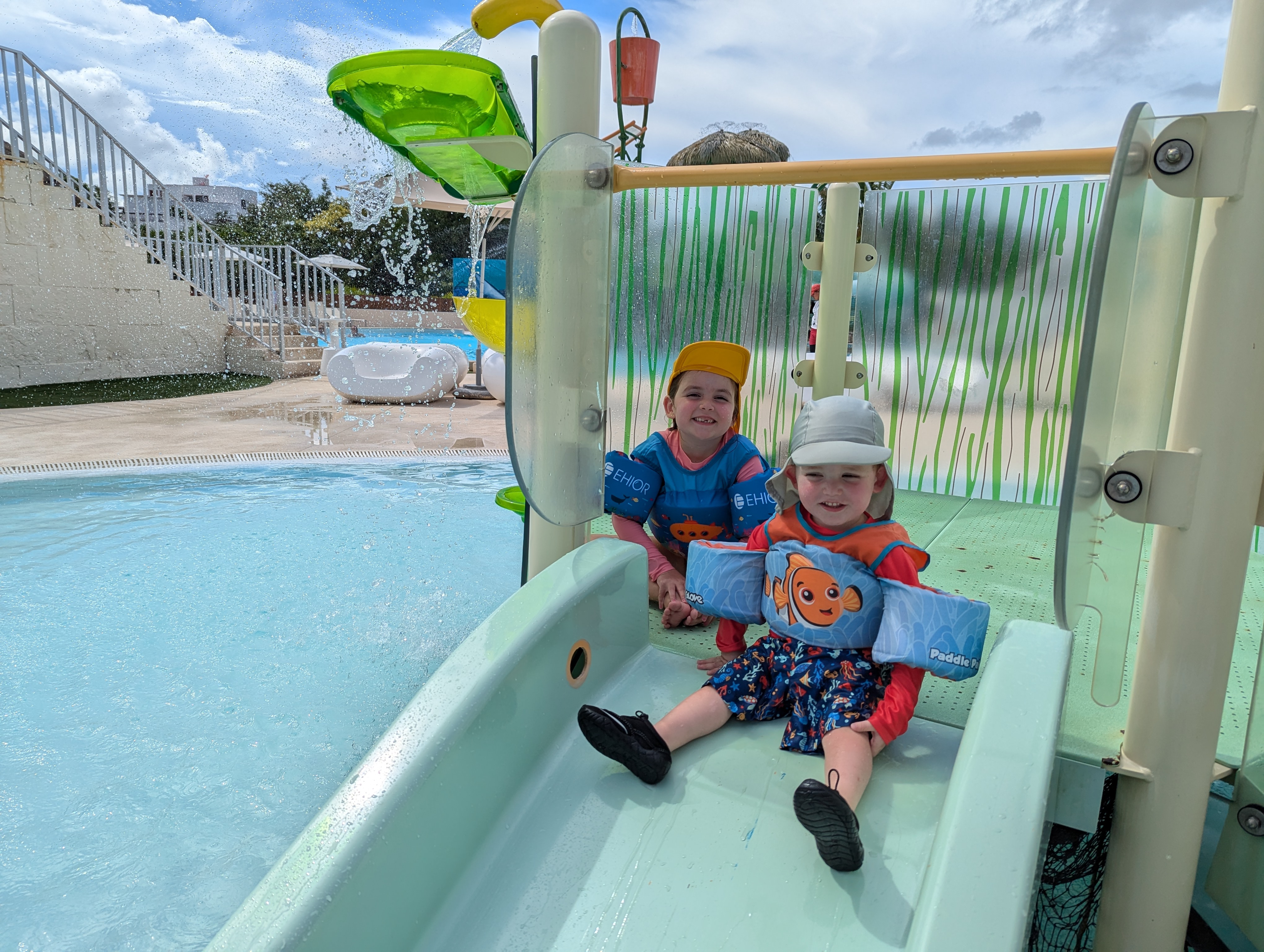 Notre fille de quatre ans a également eu énormément de plaisir dans la cour intérieure de l’hôtel dans la piscine peu profonde avec, au centre, un bateau de pirate. Il y avait, d’un côté, une large glissoire et, de l’autre, une glissoire couverte. Elle y a glissé des dizaines de fois et aurait pu y passer encore des heures.