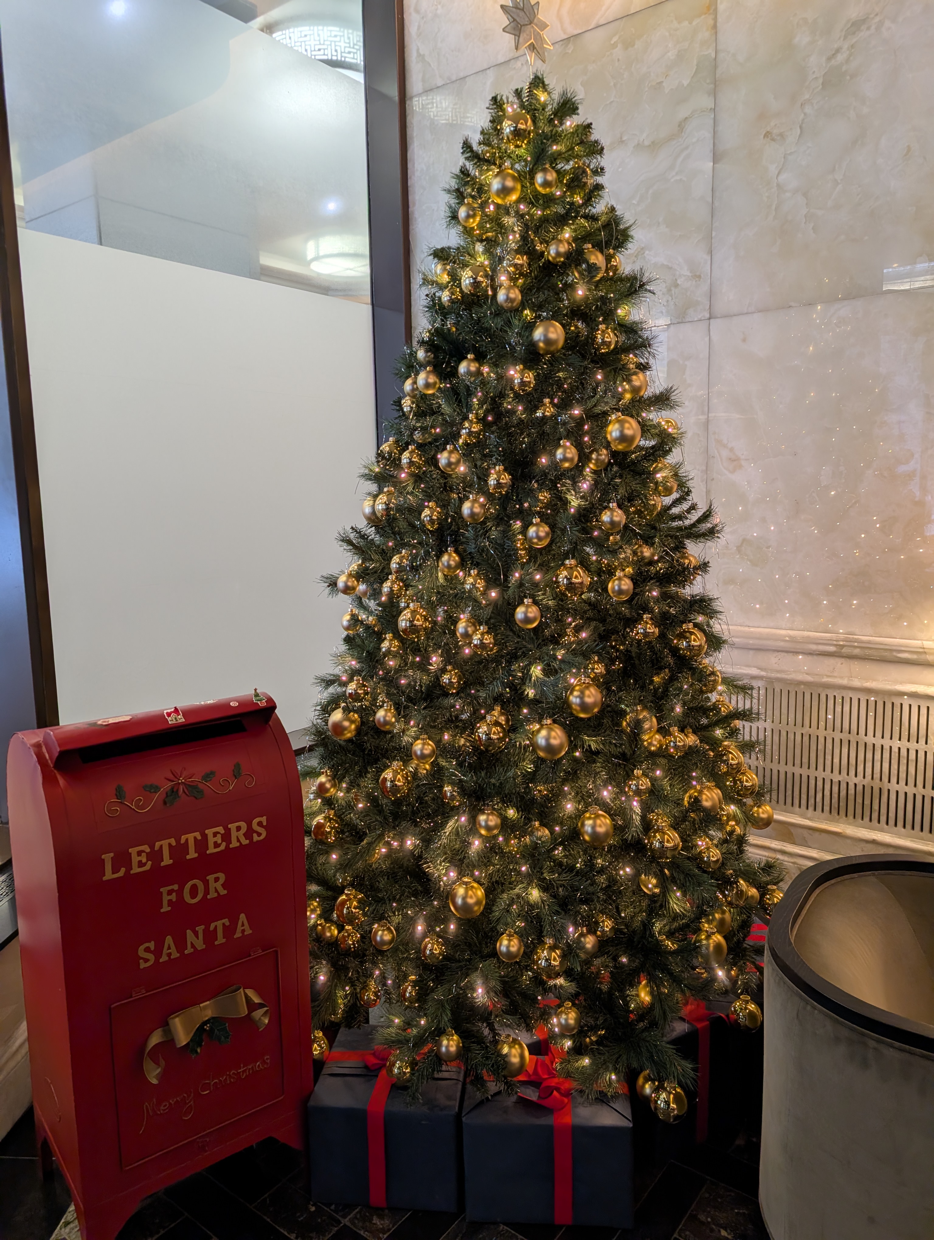 Décoré pour les Fêtes, l’hôtel était magnifique au moment de notre visite. Un beau sapin avec des ornements dorés, de même qu’une boîte à lettres servant à recueillir le courrier du père Noël trônaient dans le hall d’entrée, de même qu’un impressionnant paysage de Toronto en pain d’épice. Même la Tour CN y était! J’avoue m’être demandé, l’espace d’un instant, s’il s’agissait vraiment de pain d’épice.