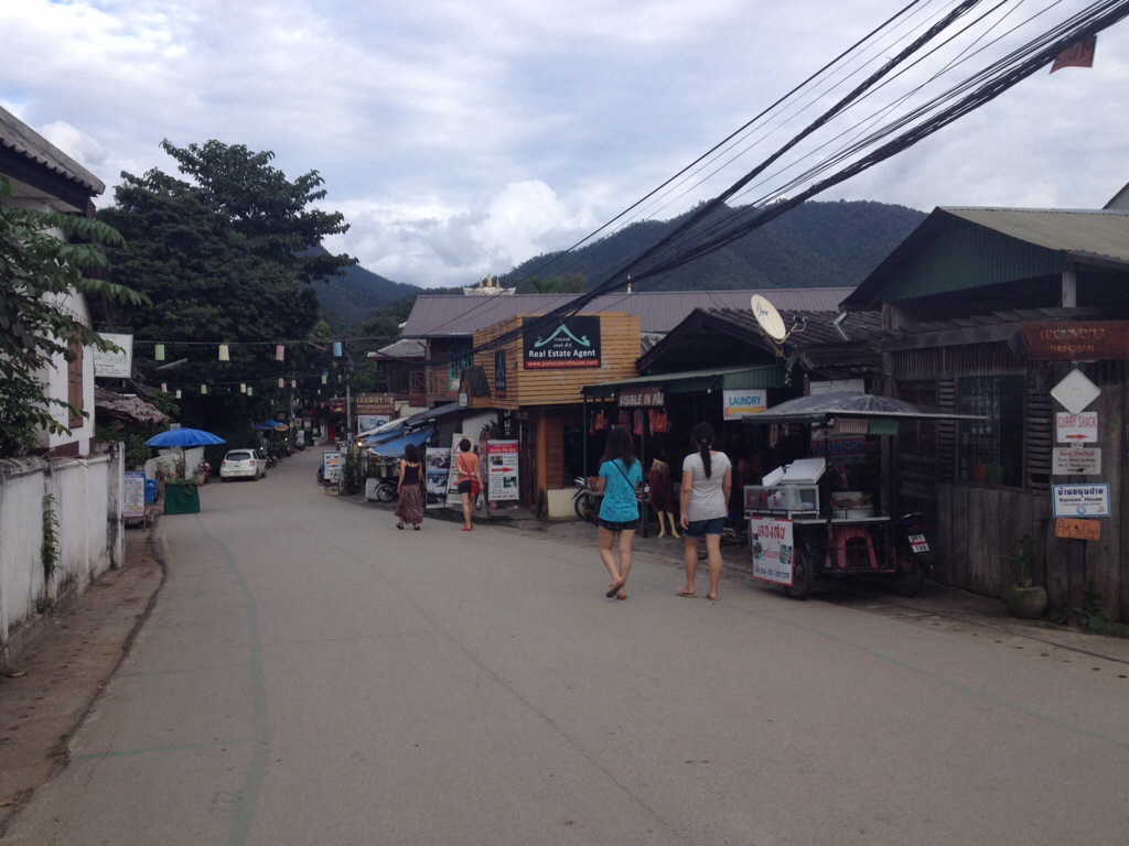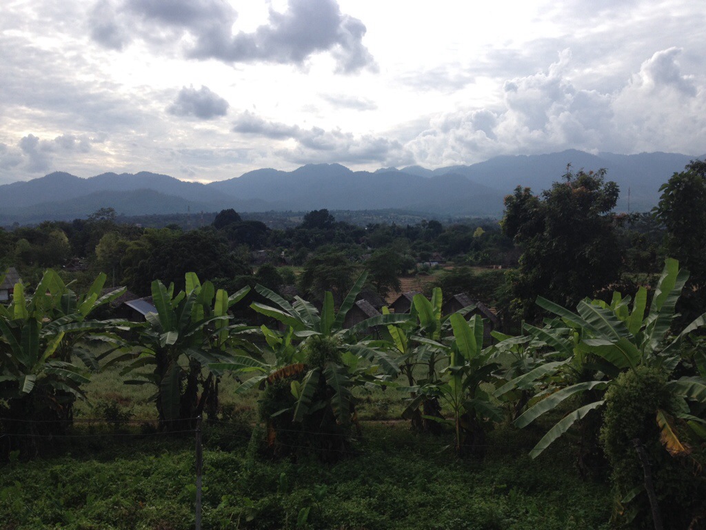 Je me prépare une fois de plus à boucler le sac à dos et reprendre la route. Les prochaines heures seront d’ailleurs plutôt longues. On quitte Pai à 14h demain pour un retour vers Chiang Mai (vous savez, la fameuse route de la mort!). De là, on prendra un autre bus pour un trajet de neuf heures direction Bangkok. On y passera une journée avant de mettre le cap sur le sud. Jusqu’à maintenant, Pai demeure pour moi un coup de cœur parmi les villes visitées. Voici la vue du balcon de l’hôtel que je vous avais promis hier. Avouez que ça aide à aimer la ville!