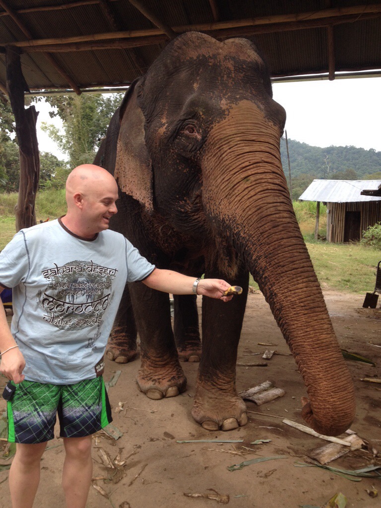 D’abord, les bananes. Après l’avion, le taxi, le tuk-tuk, le bateau et l’autobus, j’ajoute un nouveau moyen de transport à ceux utilisés depuis le début du voyage: la ballade à dos d’éléphant.