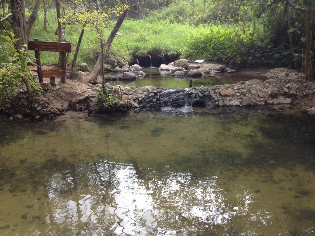 Maintenant, les œufs. En après-midi, on a fait un tour aux sources thermales, aussi appelées « hot springs », de Pai. Des spas naturels, quoi. L’eau souterraine est chauffée par le magma de la Terre et remonte ensuite à la surface.