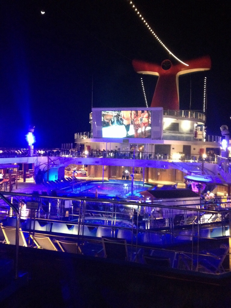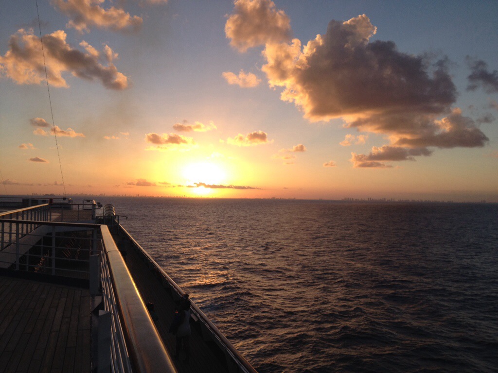 Doucement, nous avons vu la Floride disparaître derrière nous alors que le soleil en a fait de même. Les croisières ont l’habitude de nous donner les plus beaux couchés de soleil. Ça et les milliers d’étoiles une fois la nuit tombée. On a justement une cabine avec balcon pour nous permettre d’en profiter. Ça fait rêver.
