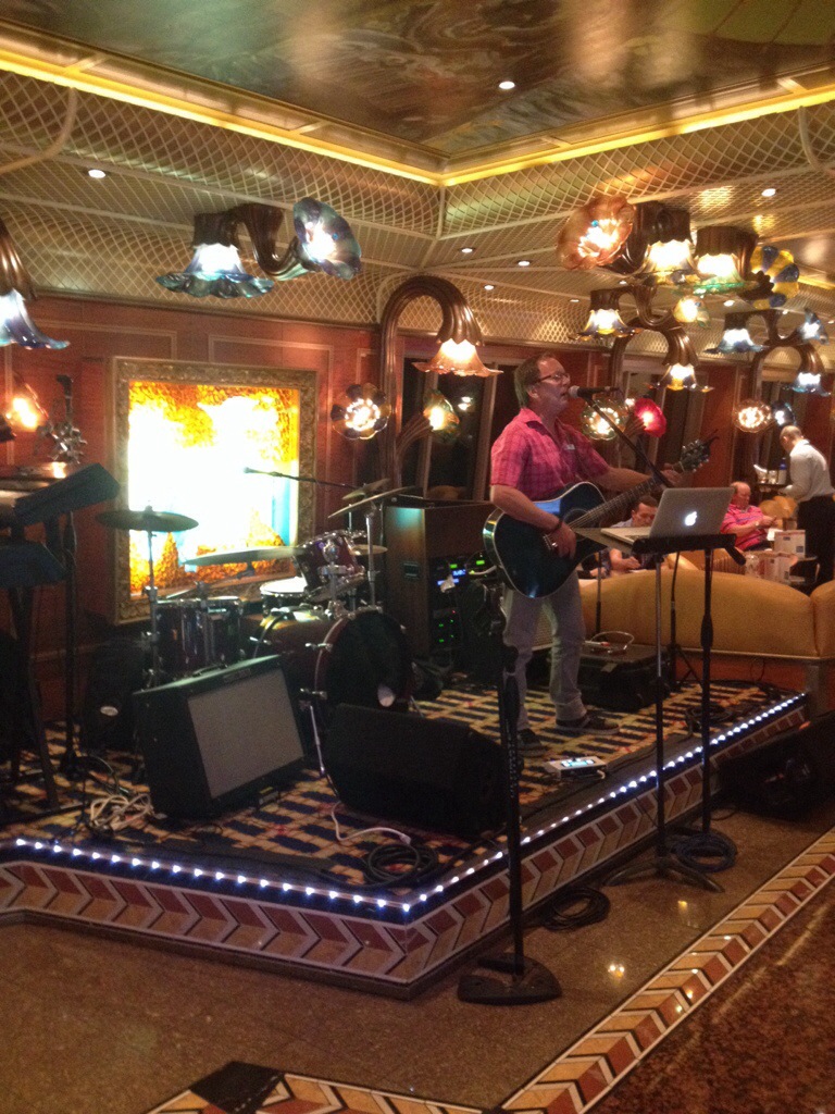 Le soir, avant le souper, il y a plein d’ambiances musicales différentes sur le navire. Des chansonniers et des groupes vraiment talentueux. À la piscine, dans l’atrium, face au casino… On s’assoit, on sirote un mojito, on écoute. Climat de vacances comme on l’aime.