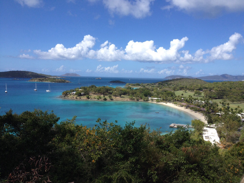 Et bien, wow, quelle journée! Juste l’odeur… Ça sentait la nature. Les plantes, les fleurs… La route qui sillonne le parc national est ponctuée de courbes prononcées qui nous en mettent sans cesse plein la vue avec des paysages à couper le souffle. De magnifiques vues sur des plages, des baies, mais aussi sur les îles voisines qui appartiennent à la Grande-Bretagne; les Îles Vierges britanniques.